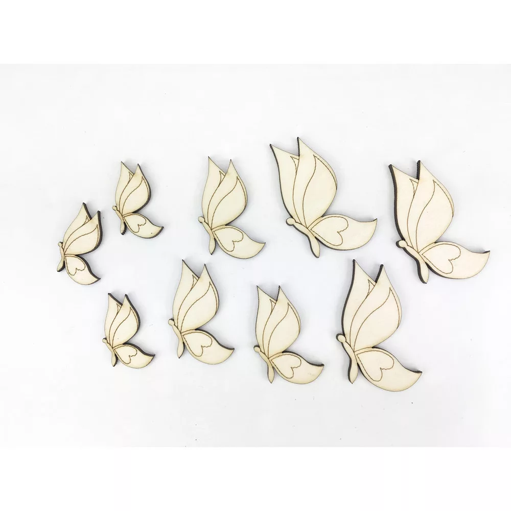 Natúr fa - Szív szárnyú lepke 3 mérteben 9db/csomag – festéshez és dekorációhoz