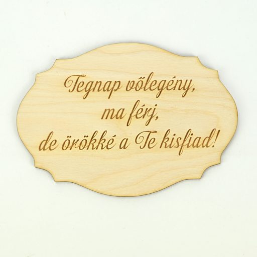 Natúr fa - Szülőköszöntő tábla "Tegnap vőlegény, ma férj,.." 13,5cm – esküvői dekorációhoz
