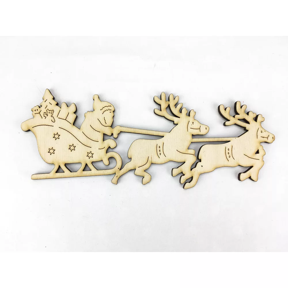 Natúr fa - Télapó rénszarvas szánnal 18cm – karácsonyi dekorációhoz és koszorúhoz