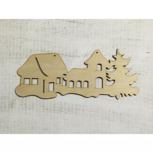 Natúr fa - Téli táj 34cm – karácsonyi dekorációhoz és koszorúhoz