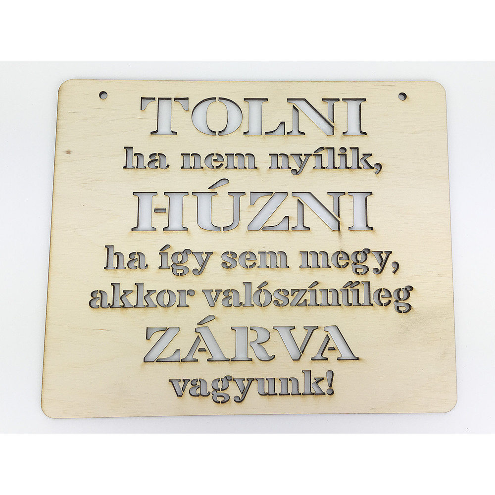 Natúr fa - "TOLNI ha nem nyílik HÚZNI ha..." tábla – festéshez, dekorációhoz
