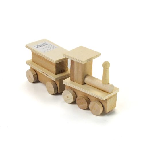 Natúr fából készült 2 részes vonat. Díszíthető, dekorálható felület.Méret: teljes hossz: 21cm, szélesség: 5cm, magasság: 10cm. Felhasználható kreatív dekorációhoz és egyedi alkotásokhoz. Ragasztóval, festékkel és más dek