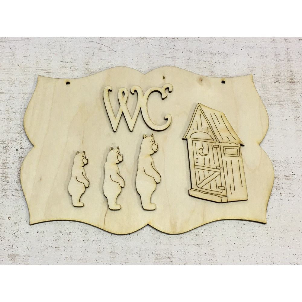 Natúr fa - "WC" tábla 19cm – festéshez, dekorációhoz
