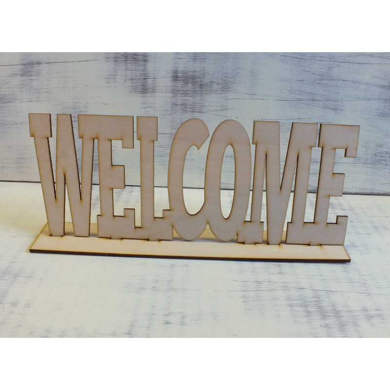 Natúr fa - "Welcome" tábla talpas 25cm – festéshez, dekorációhoz