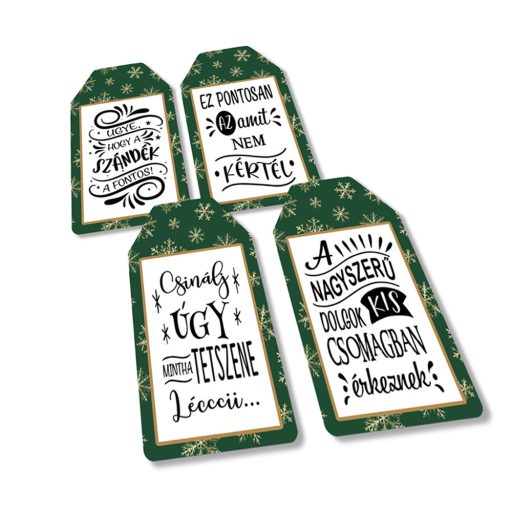Nyomtatott dekorkarton - Ajándék kísérő táblák humoros 4db/csomag – karácsonyi koszorúhoz és asztaldíszhez