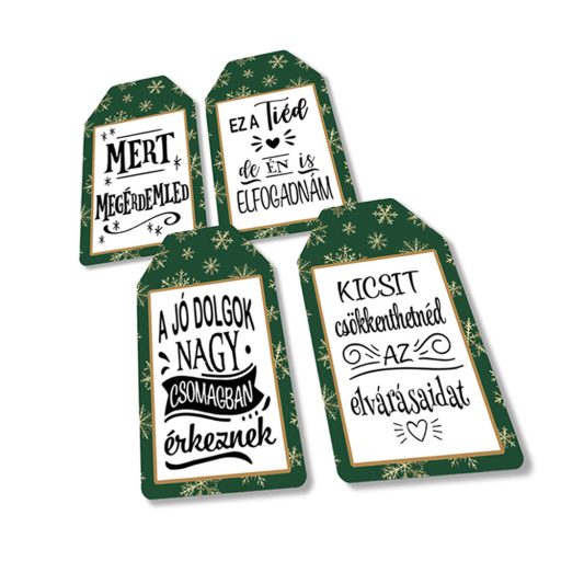 Nyomtatott dekorkarton - Ajándék kísérő táblák humoros 4db/csomag – karácsonyi koszorúhoz és asztaldíszhez