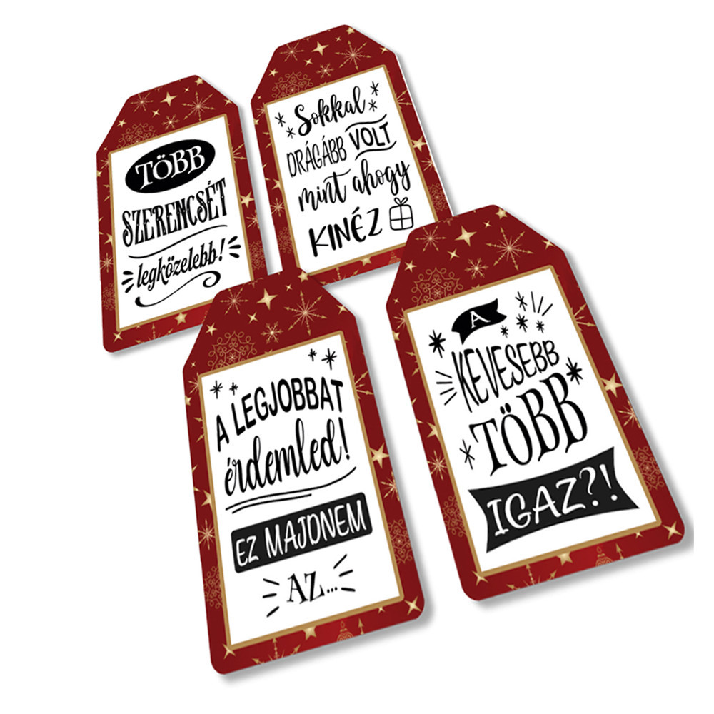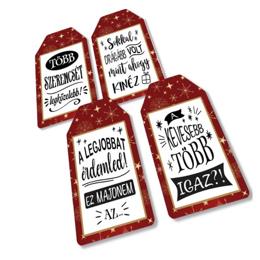 Nyomtatott dekorkarton - Ajándék kísérő táblák humoros 4db/csomag – karácsonyi koszorúhoz és asztaldíszhez