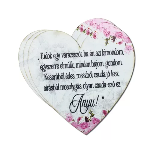 Nyomtatott dekorkarton - Anyu! idézet szív tábla 3db – anyák napi ajándékhoz és dekorációhoz