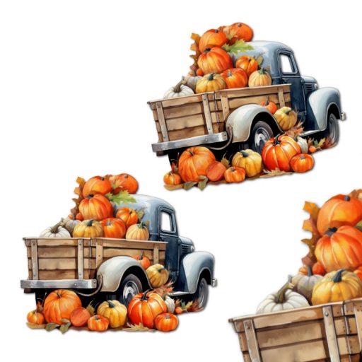 Nyomtatott dekorkarton - Autó tökökkel 2db/csomag – őszi dekorációhoz és koszorúhoz