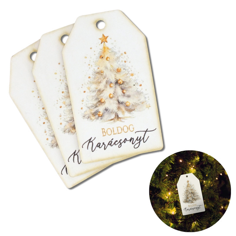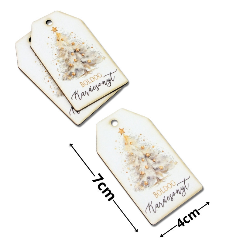 Különleges eljárással készített, lézervágott dekorkartonra nyomtatott egyedi táblák. Előnyös lehet mindenkinek, aki szereti a kézzel alkotott készítményeket valamivel kihangsúlyozni. Megjelenésével a dekorációt kiemeli a hétköznapi díszek közül.vastagság: 2mm. Felhasználható karácsonyi koszorúhoz, ajtódíszhez, asztaldíszhez és ajándékcsomagoláshoz.