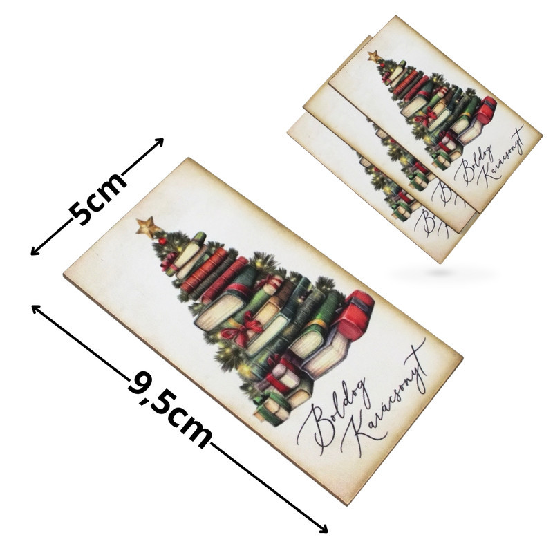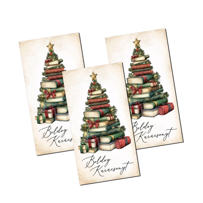 Nyomtatott dekorkarton - Boldog karácsonyt könyv fenyő 3db/csomag – karácsonyi koszorúhoz és asztaldíszhez