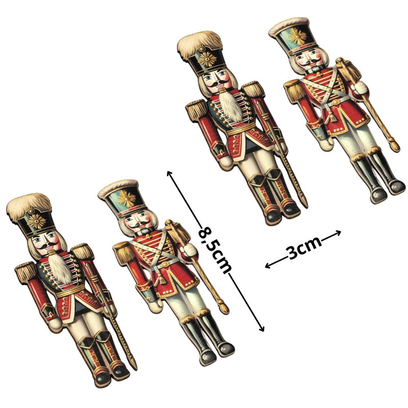 Nyomtatott dekorkarton - Diótörő 8,5cm 4db/cs – karácsonyi dekorációhoz és koszorúhoz