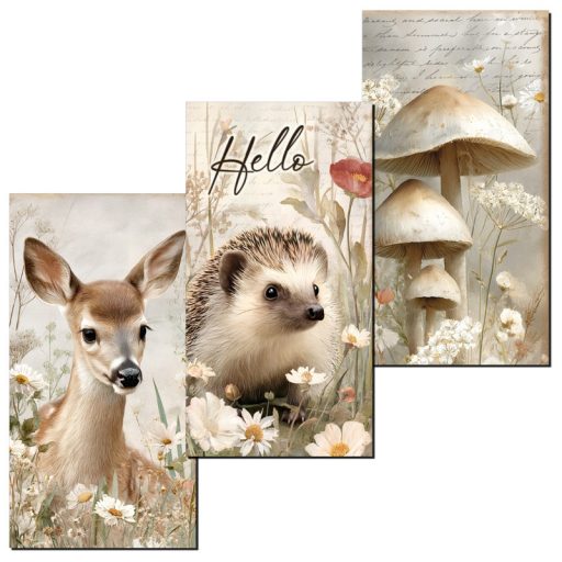 Nyomtatott dekorkarton - Erdei állatok táblák 3db/csomag – kreatív dekorációhoz