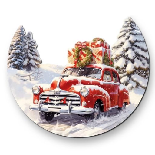 Nyomtatott dekorkarton - Félkoszorú közép - autós 10x11,8cm – karácsonyi koszorúhoz és asztaldíszhez