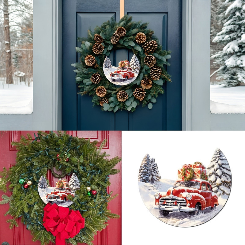 Nyomtatott dekorkarton - Félkoszorú közép - autós 10x11,8cm – karácsonyi dekorációhoz