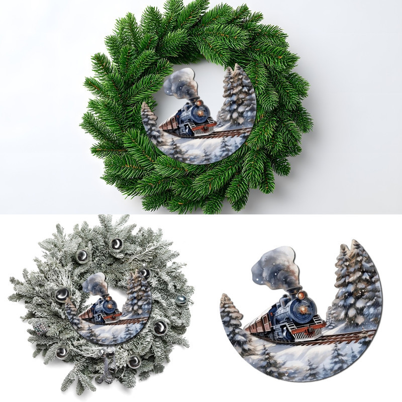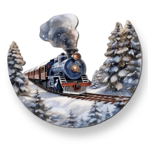 Nyomtatott dekorkarton - Félkoszorú közép - vonatos 10x11,8cm – karácsonyi koszorúhoz és asztaldíszhez