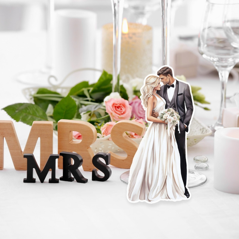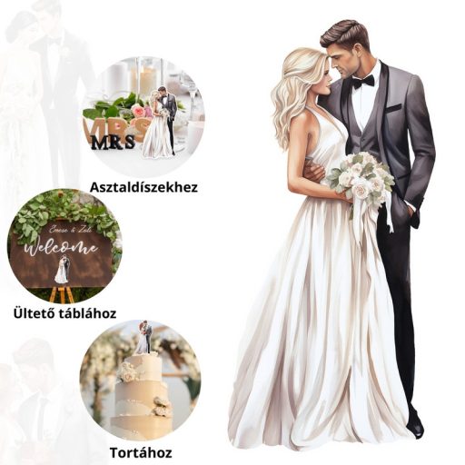 Gyönyörű házaspárt ábrázoló tábla. Ezek a tábla a tökéletes módot kínálja, hogy egy kis személyes szépséggel fűszerezzük meg a dekorációkat a nagy napon. Méret: 12,5x5,5cm