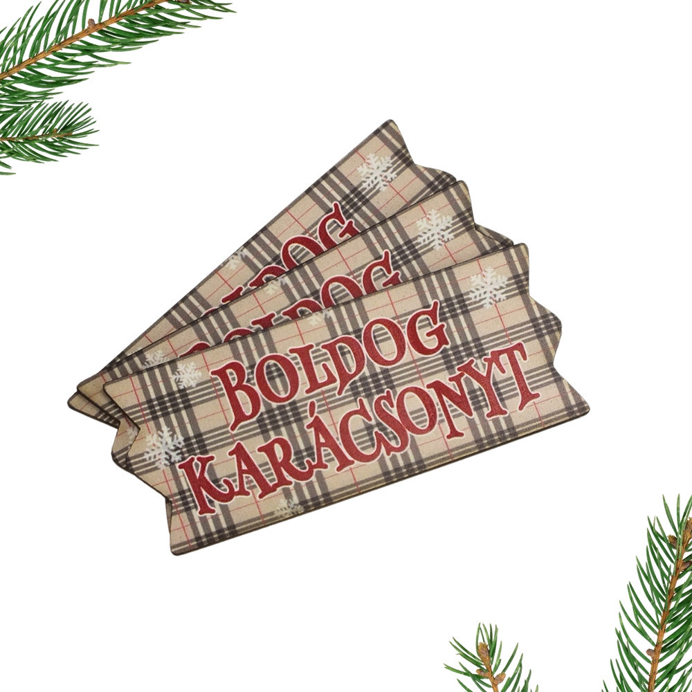 Nyomtatott dekorkarton - Karácsonyi szalag tábla - burberry 3db – karácsonyi dekorációhoz