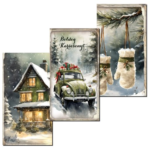 Nyomtatott dekorkarton - Karácsonyi zöld téma táblák 3db/csomag – karácsonyi dekorációhoz