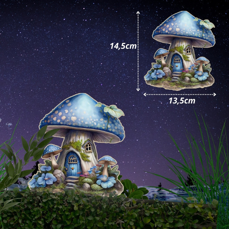 Nyomtatott dekorkarton - Kék gombaház – kerti és otthoni dekorációhoz