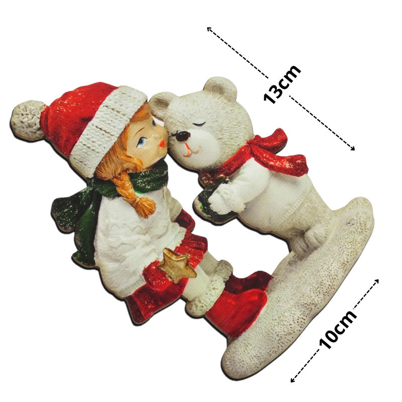 Nyomtatott dekorkarton - Kislány macival 10x13cm – karácsonyi dekorációhoz