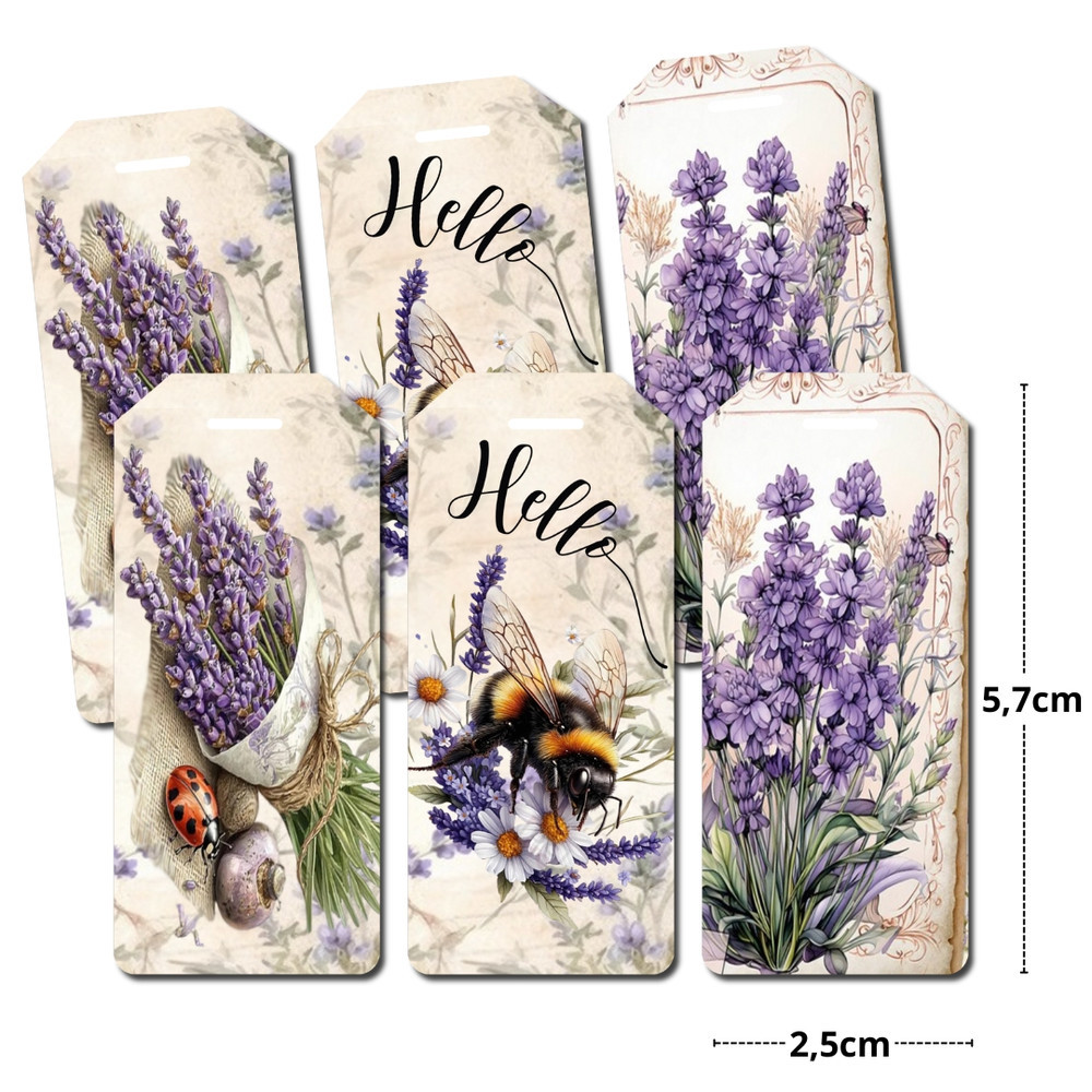 Nyomtatott dekorkarton - Levendulás biléták 6db/csomag – húsvéti és tavaszi dekorációhoz