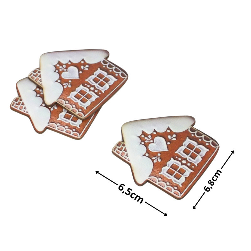 Nyomtatott dekorkarton - Mézeskalács kunyhó 3db/csomag – karácsonyi dekorációhoz és koszorúhoz