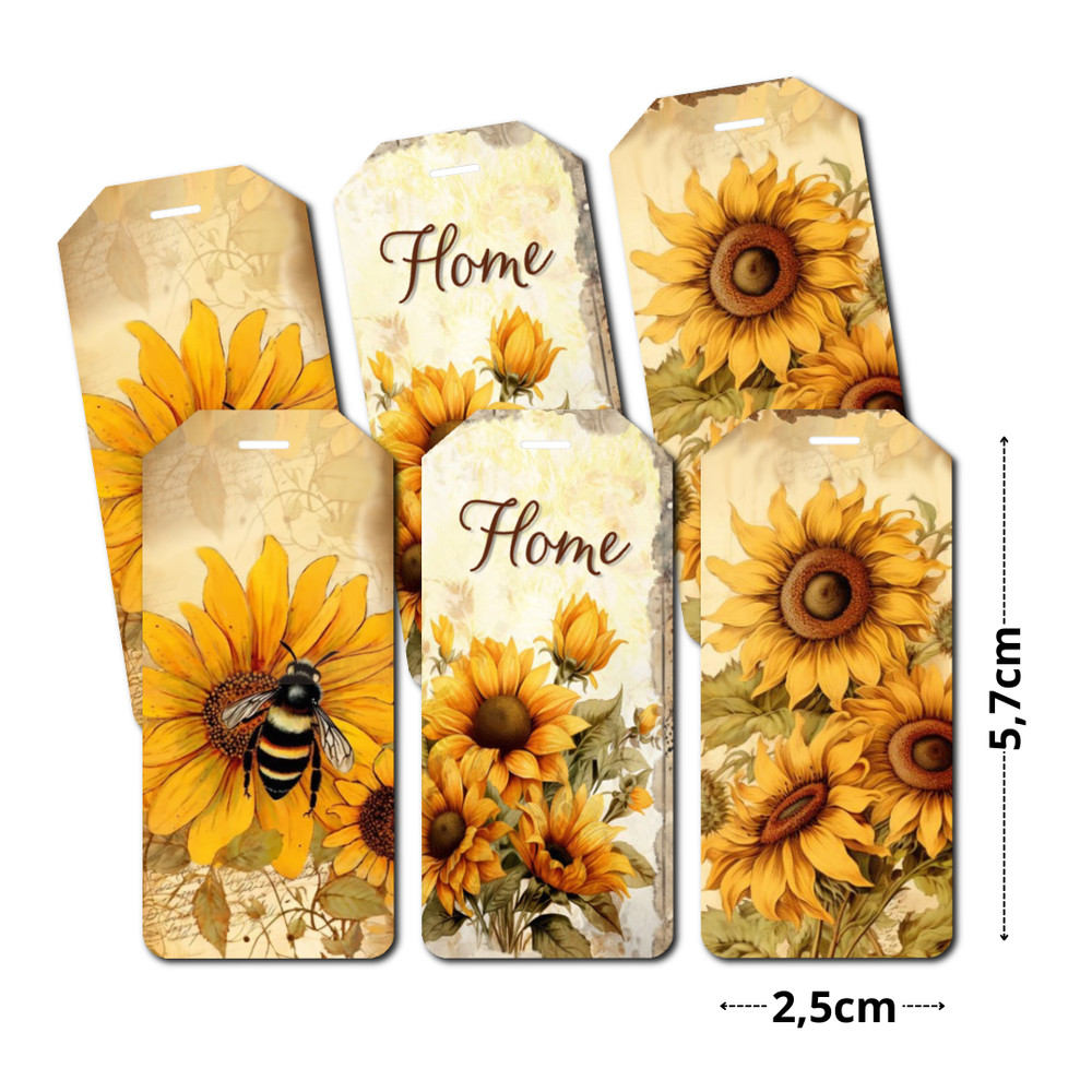 Nyomtatott dekorkarton - Napraforgós biléták 6db/csomag – őszi dekorációhoz és koszorúhoz