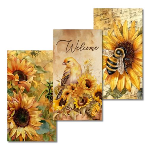 Nyomtatott dekorkarton - Napraforgós táblák 3db/csomag – őszi dekorációhoz és koszorúhoz
