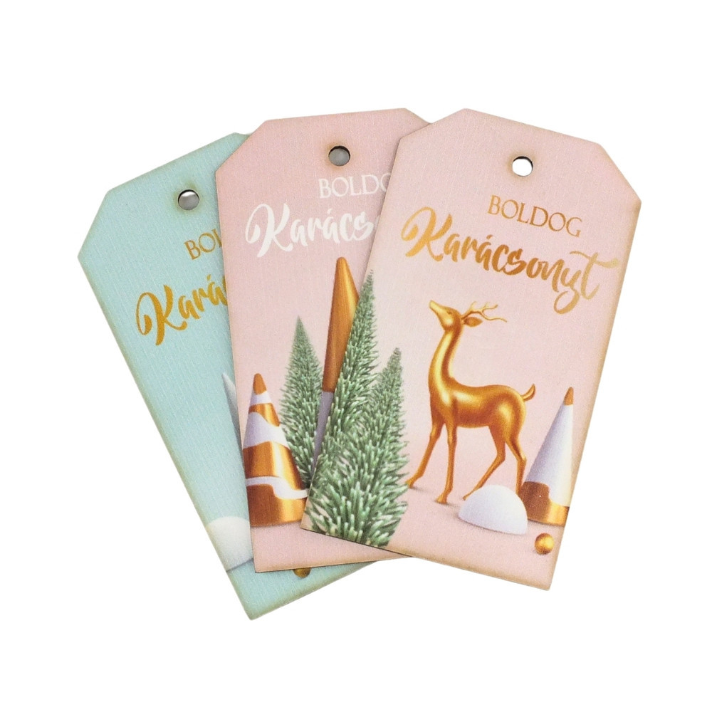 Nyomtatott dekorkarton - Pasztell-arany Boldog karácsonyt biléta 3db/csomag – ajándékcímkének, koszorúhoz