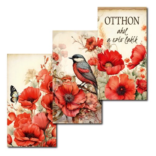 Nyomtatott dekorkarton - Pipacsos táblák 3db/csomag – húsvéti és tavaszi dekorációhoz