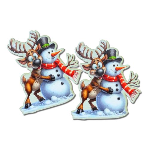 Nyomtatott dekorkarton - Rénszarvas hóemberrel 2db/csomag – karácsonyi dekorációhoz