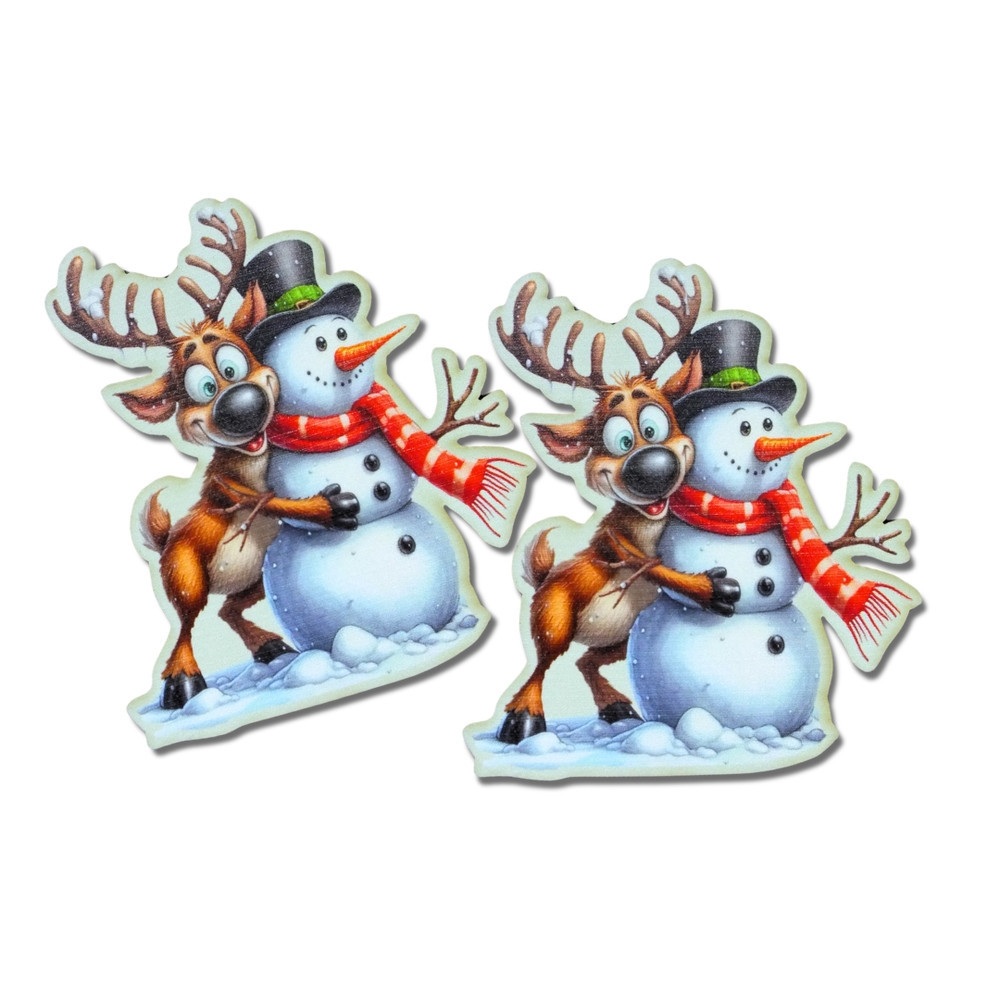 Nyomtatott dekorkarton - Rénszarvas hóemberrel 2db/csomag – karácsonyi koszorúhoz és asztaldíszhez