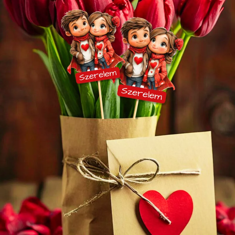 Nyomtatott dekorkarton - Szerelmes pár szerelem 2db/csomag – valentin napi ajándékhoz és romantikus dekorációhoz