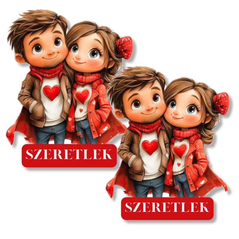 Nyomtatott dekorkarton - Szerelmes pár szeretlek 2db/csomag – valentin napi ajándékhoz és romantikus dekorációhoz