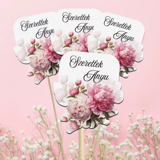 Nyomtatott dekorkarton - Szeretlek anyu virágos tábla 4db/cs – anyák napi ajándékhoz és dekorációhoz