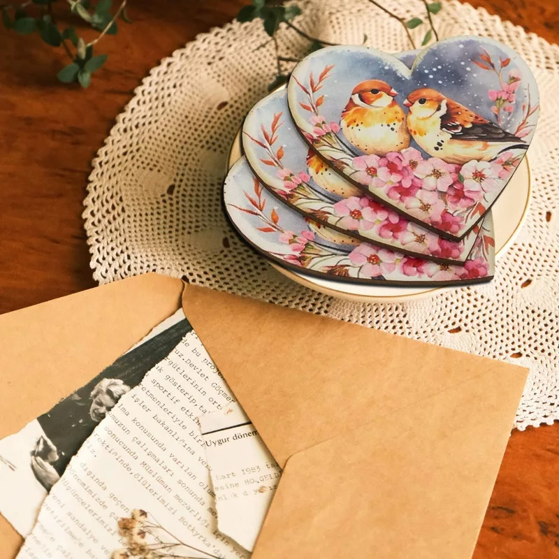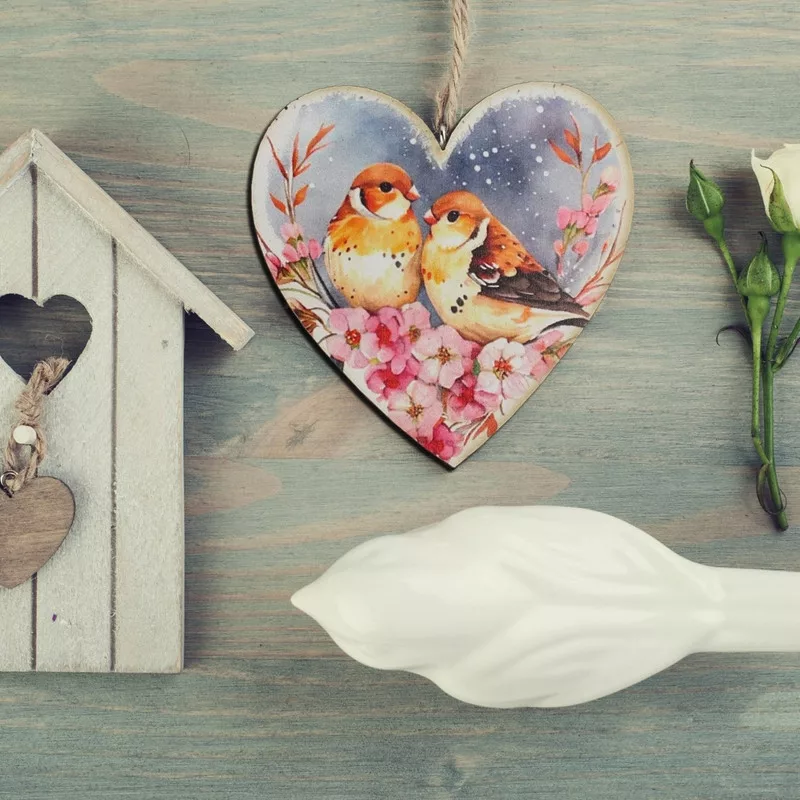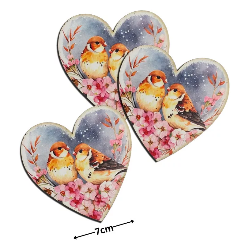 Nyomtatott dekorkarton - Szív táblák 3db/cs Madárkák virágon – valentin napi ajándékhoz és romantikus dekorációhoz
