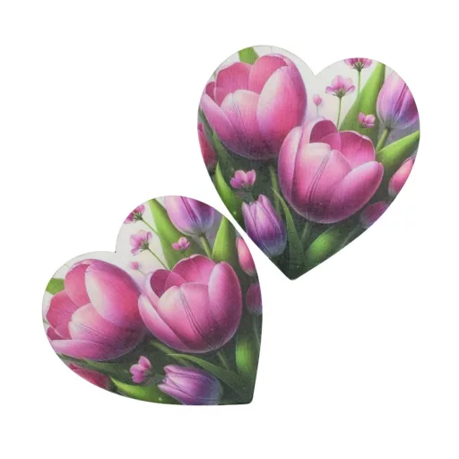 Nyomtatott fa tábla - Tulipános szív 10cm 2db/csomag – húsvéti és tavaszi dekorációhoz