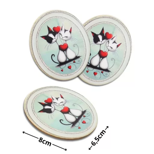 Nyomtatott dekorkarton - Valentin napi szerelmes cicák ovál tábla 3db/cs – kreatív dekorációhoz