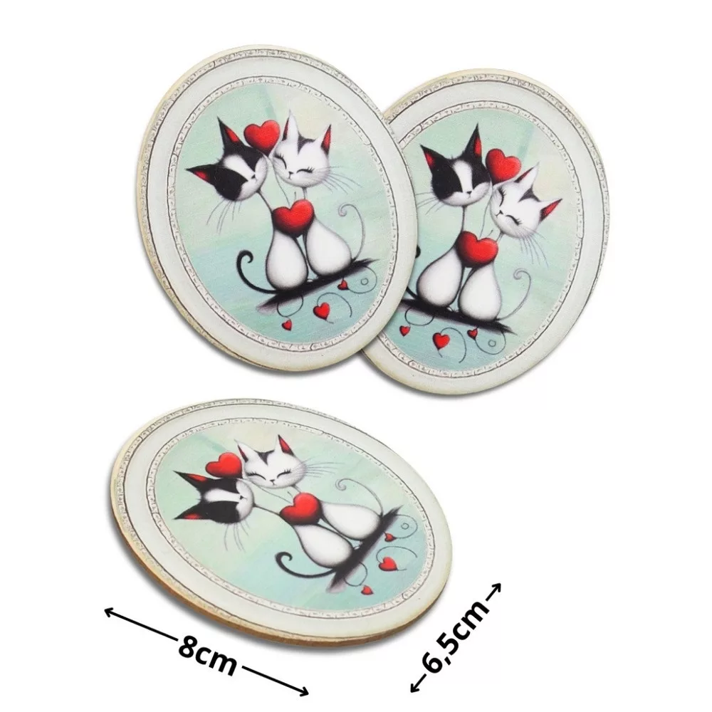 Valentin napi szerelmes cicák ovál tábla, 3db/csomagIsmerd meg különböző egyedi mintájú és formájú nyomtatott tábláinkat és díszítsd velük alkotásaidat, hogy dekorációd újabb szintre léphessen és mindenki kedvencévé váljon. Felhasználható dekorációhoz, koszorúhoz és kreatív alkotásokhoz.