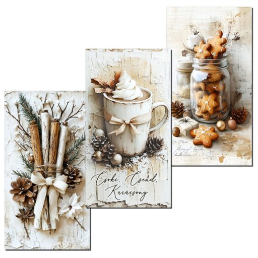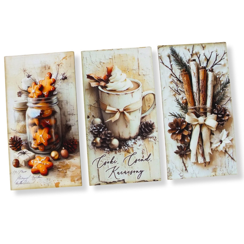 Nyomtatott dekorkarton - Vintage fehér téma táblák 3db/csomag – karácsonyi dekorációhoz