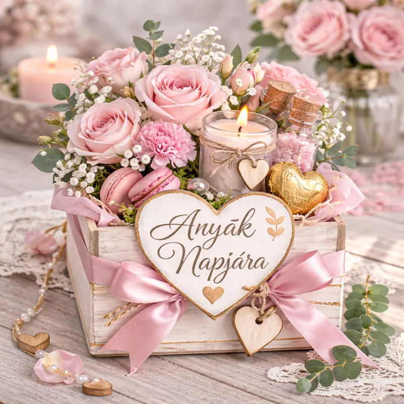 Ez a saját gyártású nyomtatott fa tábla szív formában, „Anyák napjára” felirattal és elegáns arany szegéllyel készült, így tökéletes választás ünnepi dekorációkhoz és ajándékkíséréshez. Kifejezetten jól használható virágkötészetben, virágcsokrokba tűzve vagy virágdobozok kiegészítőjeként, de koszorúkhoz, ajtódíszekhez és egyéb kreatív alkotásokhoz is ideális. A finom arany részletek elegáns, ünnepi hangulatot adnak, miközben a 9 cm-es méret praktikus és könnyen elhelyezhető kisebb kompozíciókban is. A 2 darabos kiszerelés lehetővé teszi több dekoráció elkészítését vagy páros ajándékdíszítést.