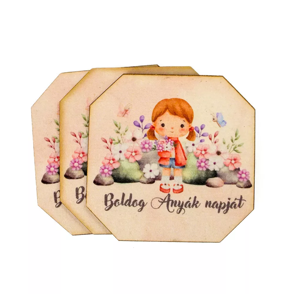 Anyák napi témájú nyomtatott fa táblák. Egyedi díszítő kellékek Anyák napi ajándékokhoz. Hurkapálcikára ragasztva betűzhető díszként használható virágcsokorba is.​Méret: 6x6cm, vastagság: 3mm