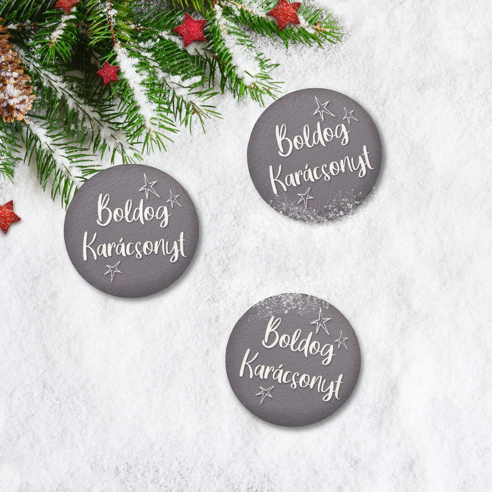 Különleges karácsonyi témájú kollekcióban üzenetekkel kívánhatsz boldog karácsonyt. Ezek a táblák a tökéletes módot kínálják, hogy egy kis szépséggel fűszerezzük meg a karácsonyi dekorációkat. Ezen kívül, ezek az üzenetekkel ellátott fa táblák tökéletes kiegészítői lehetnek ajándékoknak és csomagoknak is. Az egyedi stílusuk és hangulatuk emlékezetessé varázsolja az ajándékozást és a dekorálást egyaránt.Méret: átmérő: 5cm, vastagság: 3mm