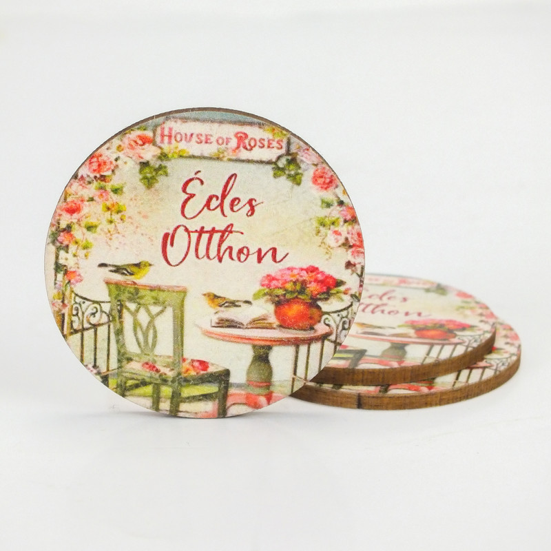Nyomtatott fa tábla - Édes Otthon (House of roses) kör 3db/cs – ajándékcsomagoláshoz és ünnepi dekorációhoz