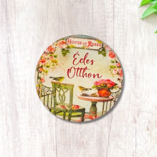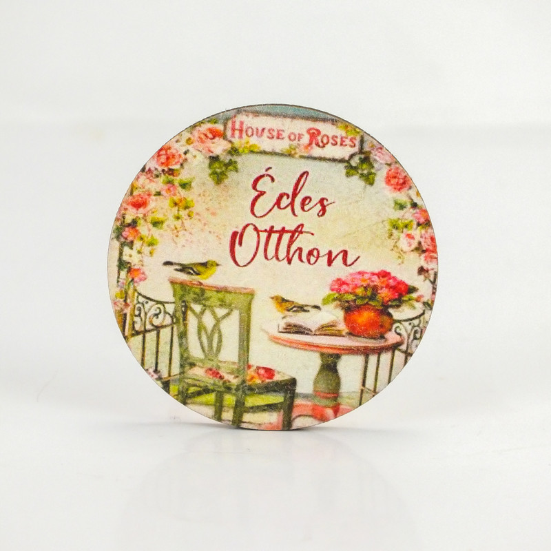 Nyomtatott fa tábla - Édes Otthon (House of roses) kör 1db – nyári alkotásokhoz és táborozáshoz