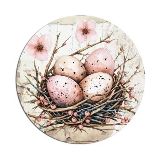 Nyomtatott fa tábla - Húsvéti RSZ téma 11,8cm – koszorúkészítéshez és ajtódíszhez