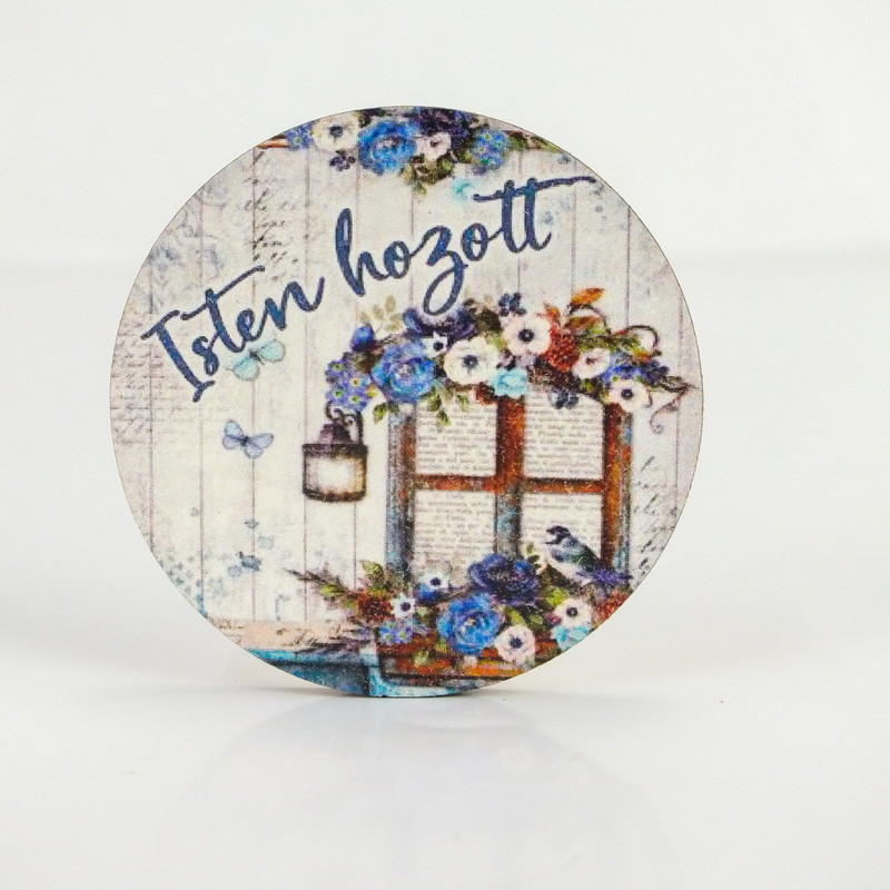 Nyomtatott fa tábla - Isten Hozott - kék, kör 1db – nyári dekorációhoz