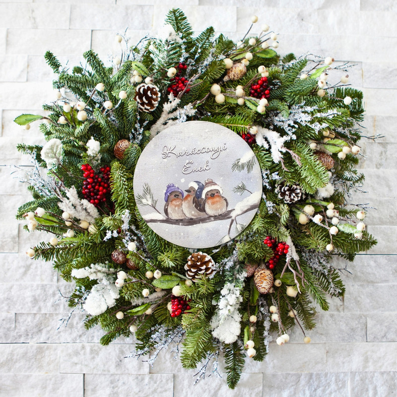 Nyomtatott fa tábla - Karácsonyi koszorú közép 11,8cm – karácsonyi dekorációhoz