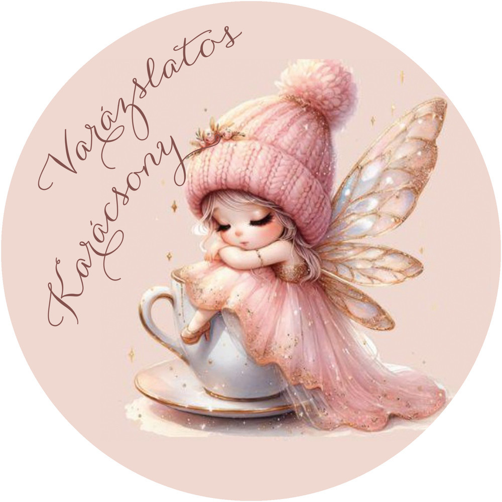 Nyomtatott fa tábla koszorú közép - Angyalkás 14,8cm – koszorú díszítéséhez